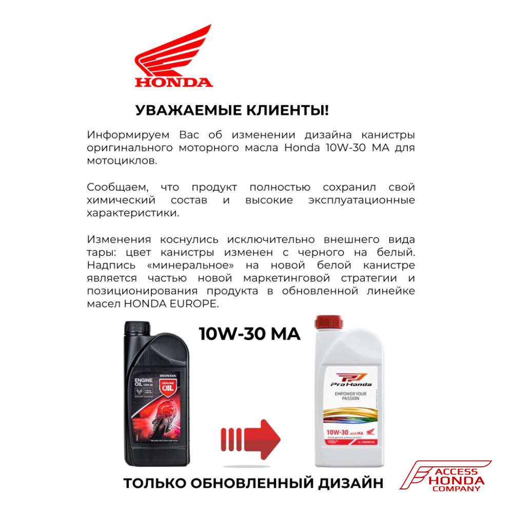 *Масло рекомендовано к применению заводом-изготовителем в новых мотоциклах Honda