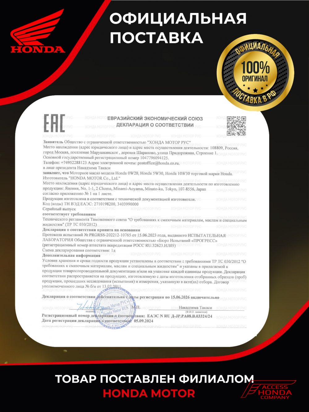 Honda специально разработала масло с классом вязкости 10W-30 с целью обеспечения топливной экономичности
